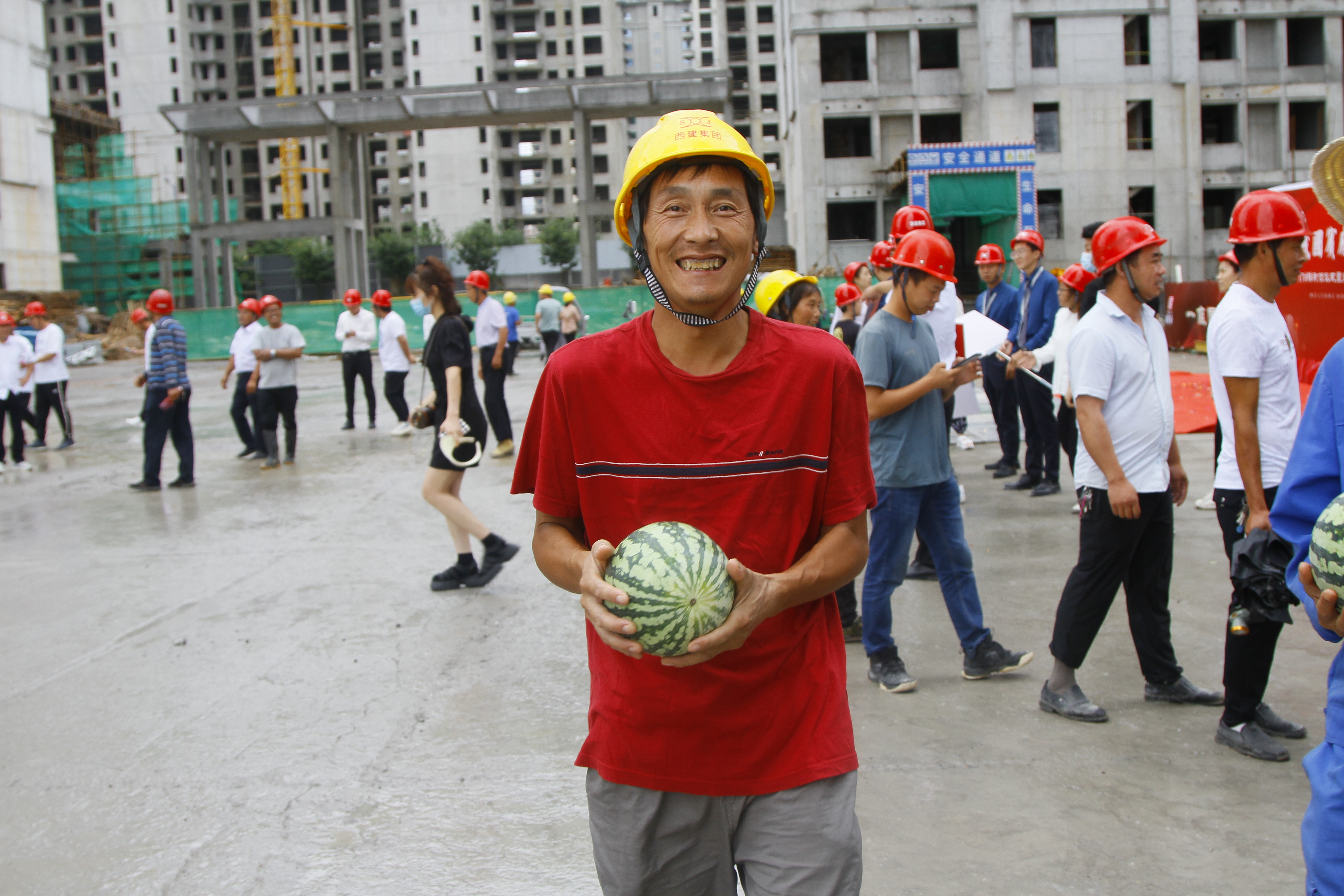 此次活動特意邀請農民工兄弟代表參加,并為他們發放消暑用品,致以感謝