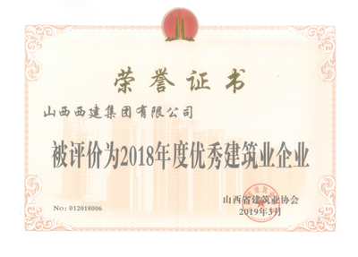 2018年,榮獲“優(yōu)秀建筑業(yè)